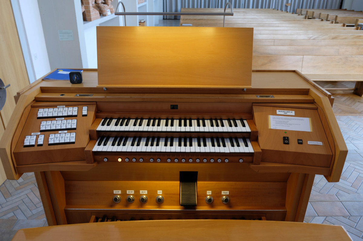 Das Hauptwerk bildet mit Gedackt 16', Prinzipal 8' und Oktave 4' ein tragfähiges Fundament. Die Mixtur sorgt für Brillanz und Plenumskraft, ohne in der relativ kompakten Orgelkammer übermässig zu dominieren.
