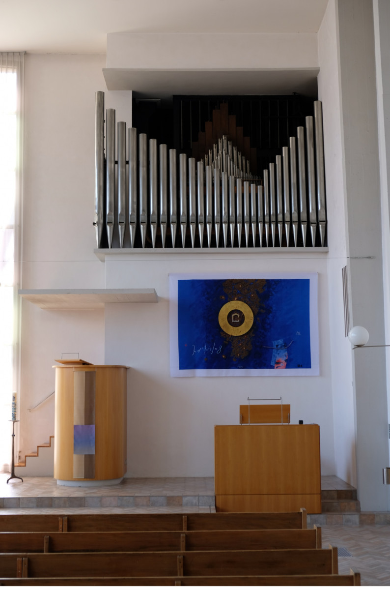 Durch diese räumliche Trennung von Pfeifenwerk und Spieltisch war eine elektrische Übertragung notwendig. Es wurde daher eine elektro-pneumatische Traktur gewählt – damals eine hochmoderne Lösung, die sich harmonisch in die sachliche, vom Bauhausgedanken geprägte Architektur einfügte.