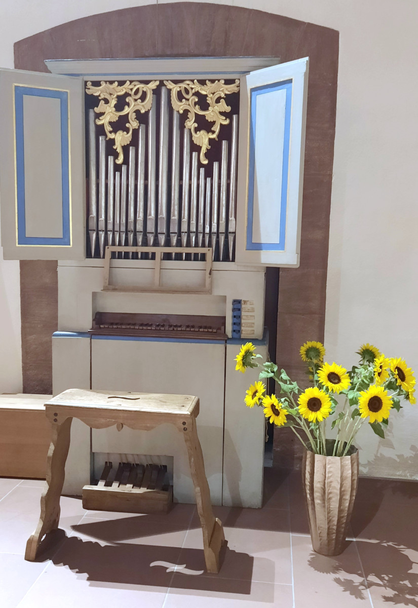 Die Orgel, aus dem Nachlass von Prof. Dr. Rudolf Ewerhart, ursprünglich aus dem gebirgigen Umland von Modena, möglicherweise aus Sassuolo stammend, entstand in ihren ältesten Teilen im 17. Jhd. (Unterbau mit Klaviaturen, möglicherweise Teile der Windlade und zahlreichen Pfeifen) und zeigt die typischen Merkmale des Orgelbaus im Gebiet der Emilia Romana. Im 18. Jhd. wurde das Werk mehrmals umgebaut. Der Pfeifen-Prospekt und der fehlende Einschub oberhalb der Padalklaviatur erinnern nach Expertenmeinung an Pietro Cavalletti. Das Werk besitzt 181 Pfeifen. Seit Sommer 2023 erfreut das Werk mit seinem frischen, singenden Klang den Chorraum der Basler St. Clarakirche. |